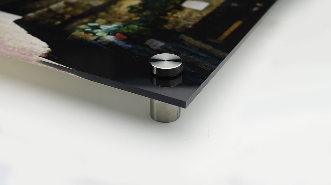Printed to the edge - Ready to hang - provided with 4 premium polished aluminum stand off ( wall screws and mounting hardware provided ) We suggest a thicker 3/16" acrylic for any size over 42 inches to guarantee a straight acrylic, without curvature
