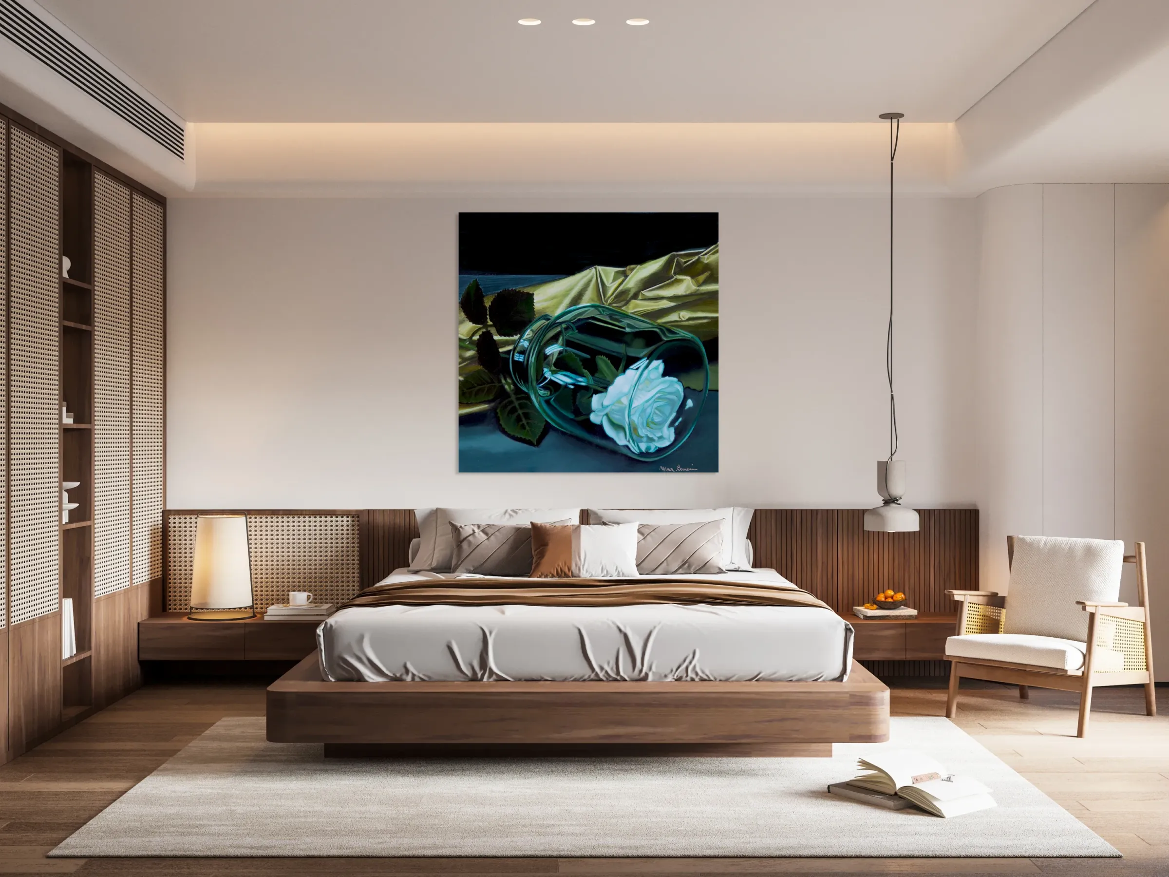 Titre: Élégance sous verre / Oil Painting / 12 x 12