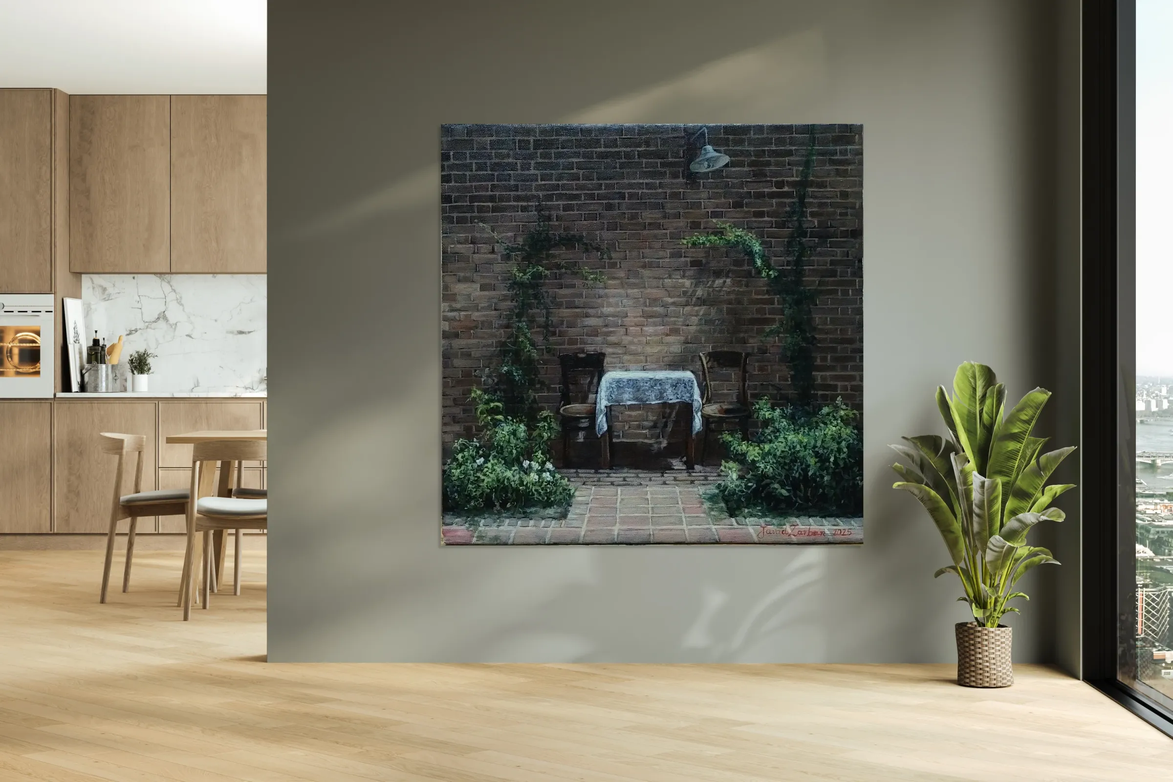 Get this artwork "Javad Zarban - Remembrance of That Day - Oil Painting - 12 * 12 inches" in a framed print.