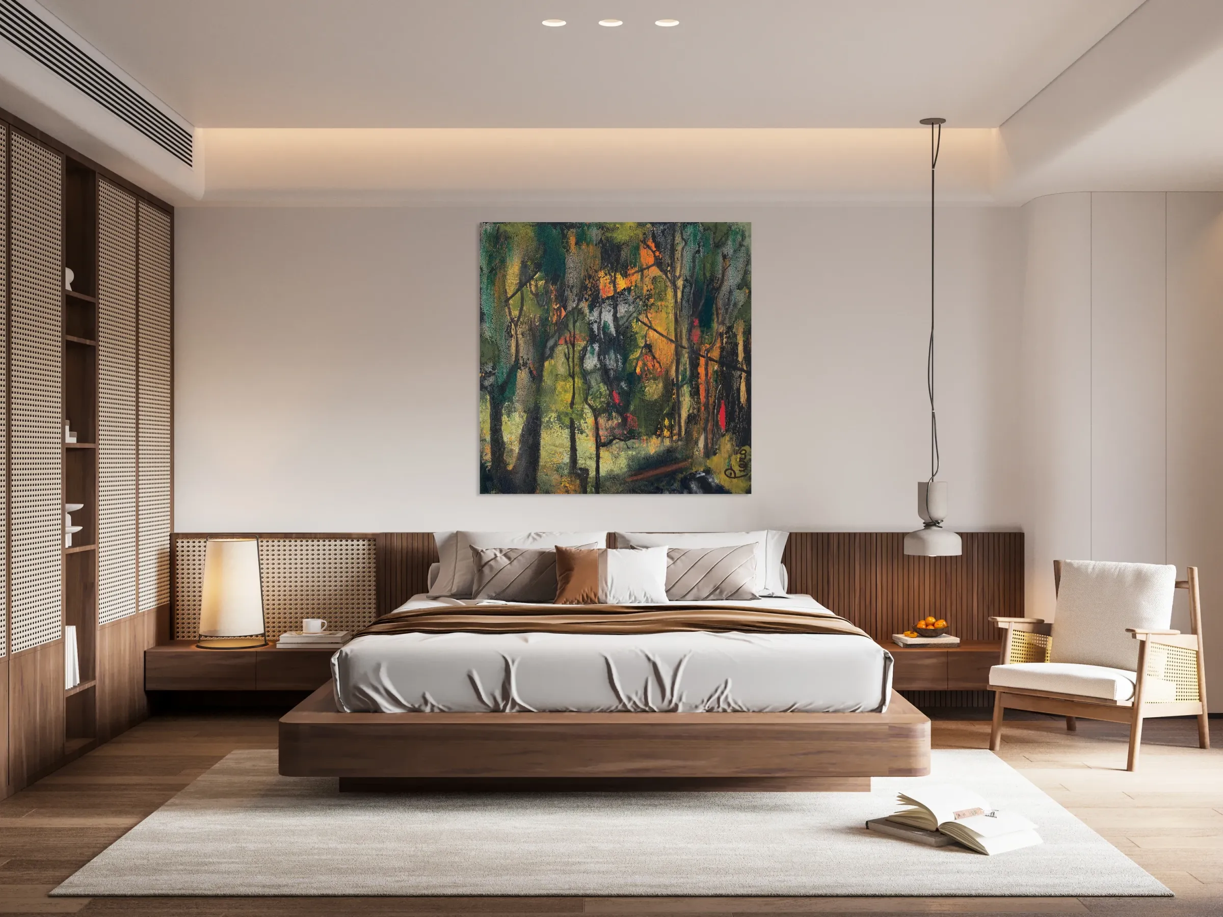 Get this artwork "Pierrette Piero Desrosiers - Le sous-bois - Acrylic - 18 x 18" in a framed print.