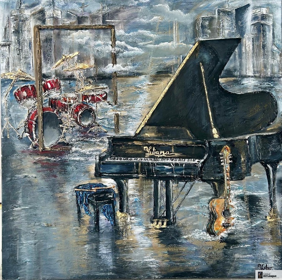 Yuliana Lytvar - Nocturne Waves Mix Medium 36 x 36 par Global Art League [+]